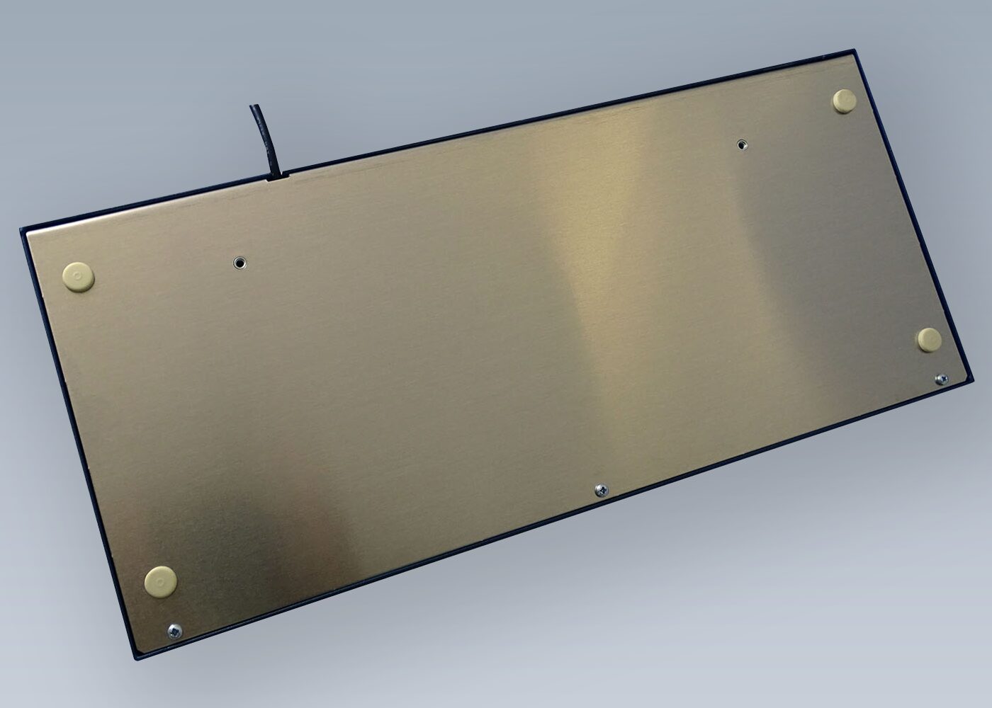 Sur le clavier industriel 105 touches ergonomique très robuste, on remarque que le contact clavier carbone / carbone est bien protégé et la force mécanique qui peut être exercée sur la membrane est parfaitement contrôlée par la course du piston. On a donc un contact extrêmement bien protégé nous permettant de garantir plus de 20 millions de manœuvres par touche. Cette technologie très appréciée pour les saisies fréquentes et rapides est utilisée pour la réalisation de claviers industriels durcis dédiés à des applications industrielles et militaires. La partie clavier est ainsi garantie 5 ans et cette technologie très pérenne a fait ses preuves aux quatre coins du monde et pour toutes sortes d’applications sensibles.